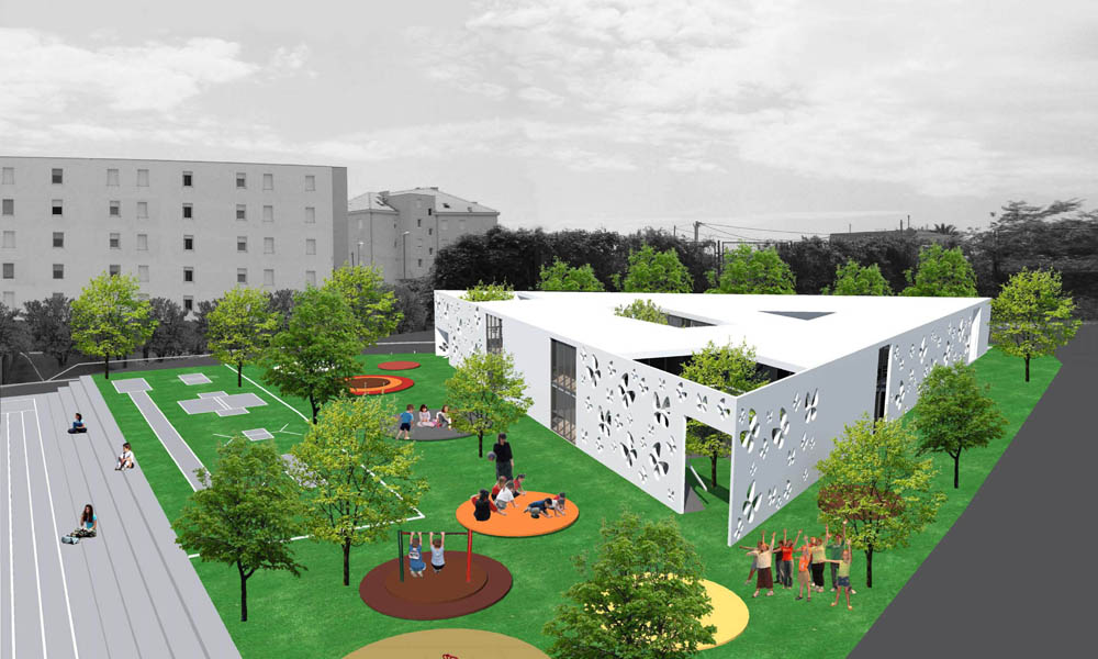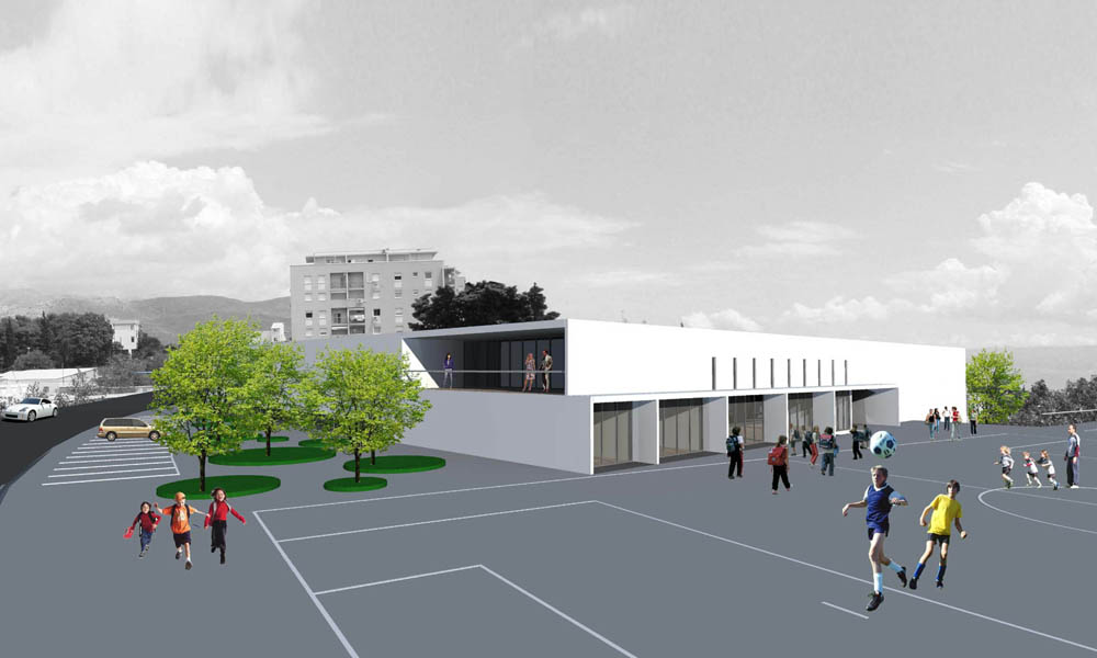 Idejno arhitektonsko rješenje zgrade osnovne škole i zgrade dječjeg vrtića u gradskoj četvrti PazdigradSplit status: Javni natječaj investitor: Grad Split autori: Jelena Bašić Galošić, Matija Galošić godina: 2009